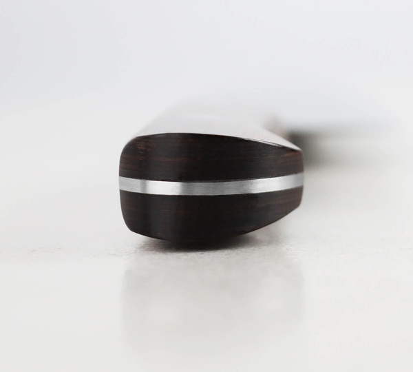 Nitowana rękojeść wykonana z drewna pakka, dodatkowo wzmocniona bolsterem. Szybkotnącą stal proszkową SRS15 charakteryzuje wysoka agresja cięcia, a zawartość wolframu na poziomie 1,25% zwiększa jej odporność na ścieranie, tym samym długo utrzymuje ostrość.