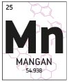 Mangan – W ilościach do 0,8 % jest dodawany do stali w celu związania tlenu i siarki, zapobiega to tworzeniu się niepożądanego siarczku żelaza, który powoduje kruchość na gorąco. W większych ilościach dodawany jest w celu umocnienia roztworowego stali, poprawienia hartowności oraz zmniejszenia ziarna ferrytu (co poprawia odporność stali na pękanie). Poprawia właściwości wytrzymałościowe, zaś zmniejsza właściwości plastyczne.