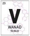 Wanad – Jest często dodawany do stali w celu zwiększenia hartowności. W ilości od 0,2 % (stal VG 5 i 10, Super Aogami, R -2, AUS 8) wpływa również na wystąpienie w stali zjawiska umocnienia wydzieleniowego (poprzez wydzielenie rozpuszczonego składnika z przesyconego roztworu stałego). Większe ilości wanadu powodują znaczne zwiększenie odporności na ścieranie, twardości, wytrzymałości i granicy plastyczności. Co ciekawe, zastosowanie wanadu zwiększa również udarność oraz sprężystość stali. Jego stosowanie nie powoduje zmniejszenia wydłużenia i przewężenia. Pierwiastek ten jest więc fenomenem, poprawia zarówno właściwości wytrzymałościowe, jak i plastyczne.