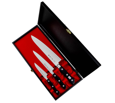 Noże Tojiro z serii DP3 to profesjonalna linia noży wykonana w stylu zachodnim, ostrza bardzo długo zachowują ostrość oraz są łatwe w konserwacji, a rękojeść cechuje odpowiednie wyważenie. Nitowana rękojeść z drewna eco jest przyjazna środowisku, jak również bardziej odporna na kurczenie i pękanie pod wpływem wilgoci. Trzywarstwowa stal nadaje ostrzom niezwykłą wytrzymałość i odporność na rdzewienie.