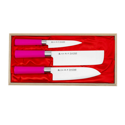 Satake Macaron Pink Zestaw 3 noży w drewnianym pudełku
