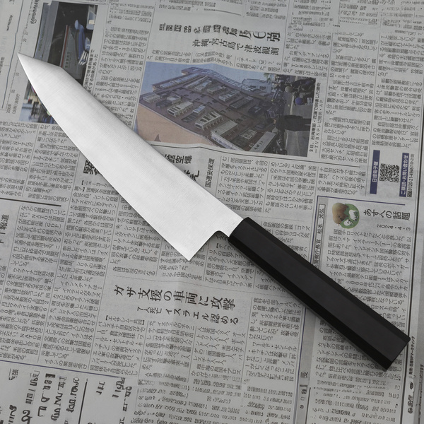Nóż Szefa kuchni to podstawowy nóż każdego kucharza, pokroimy nim mięso, ryby jak również owoce i warzywa. Nóż o długości 21 cm dedykujemy zarówno dla początkujących kucharzy, jak i do profesjonalistów. Z pewnością Gyuto w tej długości, może być pierwszym wyborem w naszej nożowej przygodzie.