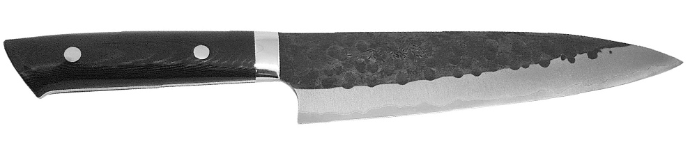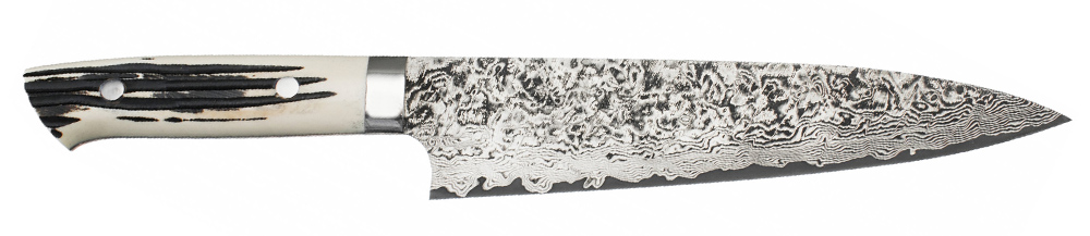 Shirogami#2 nazywana również white steel. Jest najczystszą ze stali węglowych i bardzo prostą, jej skład to w zasadzie żelazo i węgiel, którego potrafi mieć do 1,15%. Bardzo łatwa do naostrzenia stal i bardzo łatwo osiągnąć na niej efekt perfekcyjnej i wypolerowanej na lustro krawędzi tnącej. Stal tą można hartować do bardzo wysokich twardości, co również przekłada się na bardzo długie trzymanie ostrości. Jednak to stal węglowa więc będzie bardzo szybko patynować i rdzewieć i należy o nią dbać i pamiętać, by nie zostawiać noża w środowisku wilgotnym. Jeśli nie przeszkadza nam patyna, to paradoksalnie będzie ona dobrą ochroną przed rdzewieniem wgłębnym.
