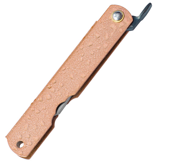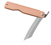 Aogami #2 - znana również jako blue steel. Stal węglowa z minimalnymi zanieczyszczeniami z huty Hitachi. To stal oparta na Shirogamiwzbogaconej dodatkowo wolframem i chromem do przekłada się na większą odporność na ścieranie, a więc ekstremalnie długie trzymanie ostrości oraz na wyższą niż w Shirogami agresję cięcia. Niestety trochę trudniej ją naostrzyć niż Shirogami #2.