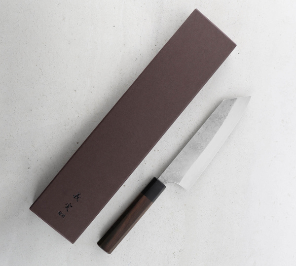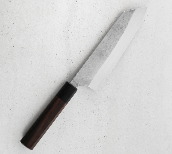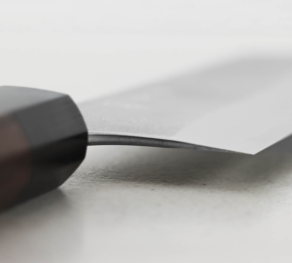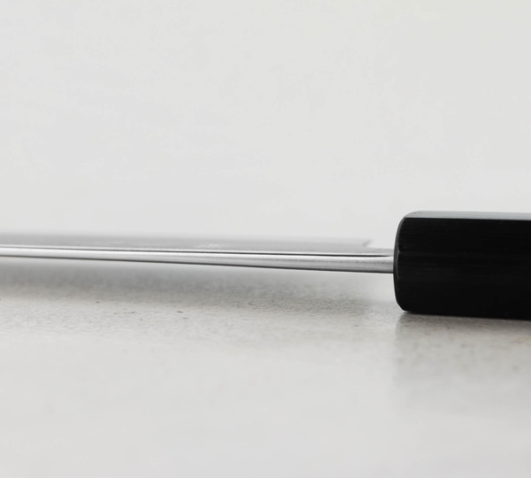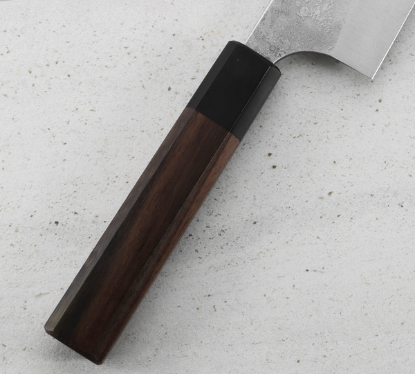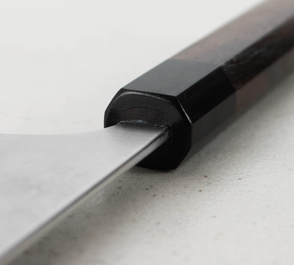 Konstrukcja jest niezwykle lekka, a oktagonalna rękojeść idealnie dopasowuje się do dłoni. Noże Yoshimi Kato, ze względu na ręczne wykonanie mogą minimalnie odbiegać od przedstawionych zdjęć. Każdy wzór jest unikatowy, co sprawia, że noże są wyjątkowe i niepowtarzalne.